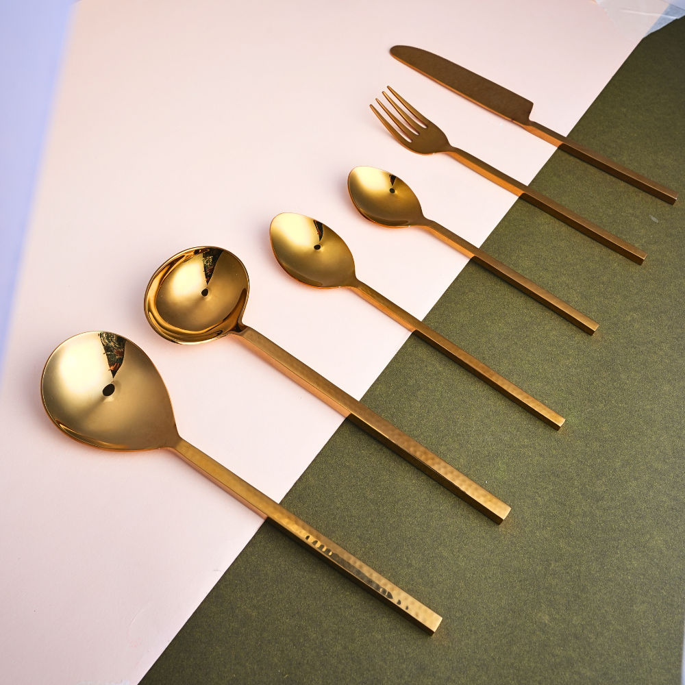 Presenting the Gold Feast Dining Set, which combines exquisite craftsmanship with a refined aesthetic. This set, with its glossy gold finish, gives your dining table an opulent touch, perfect for a formal dinner or a large party. Each piece is expertly crafted to give a seamless dining experience while striking the ideal balance between appearance and functionality. The Gold Feast Dining Set, perfect for people who appreciate both luxury and practicality, elevates regular meals into spectacular events and adds refinement to your dining experience.