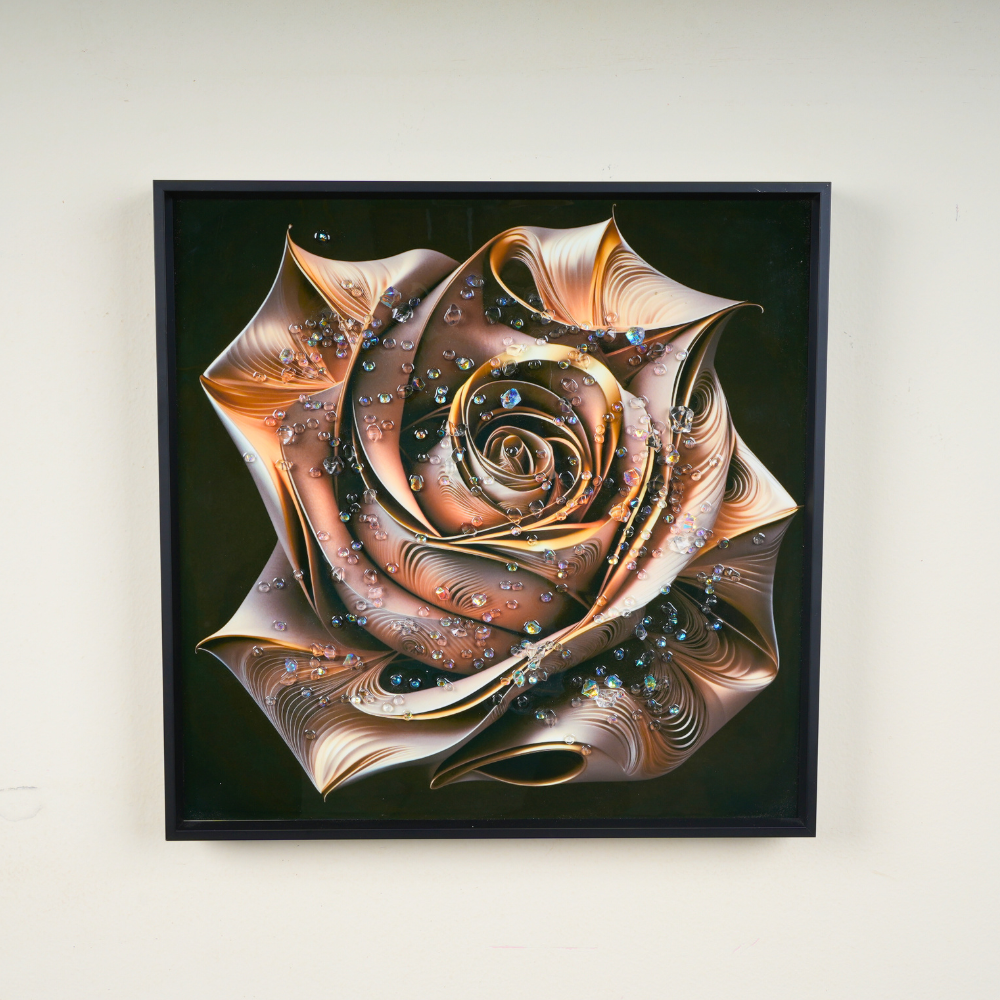 Cosmic Bloom Rose Painting is an enchanting 3D painting linking the mystique of cosmic wonder to the dainty charm of a rose in bloom. This beautiful artwork defines a rose as a cosmic being where its petals unfold like spirals of distant galaxies. Tiny crystal inlays in every petal are evocative of stardust across the night sky. Vibrant colours play an interplay - blush pinks, deep purples, and shimmering blues - creating a cosmic palette, as if this flower was born from the embrace of a nebula. The intricate layering of the petals adds depth; the viewer is invited to view every fold and curve much like stargazing into the infinite expanse of the cosmos. Cosmic Bloom is just perfect with its natural elegance and otherworldly wonder, capturing the beauty of fleeting moments in life, giving a glimpse into the timeless mysteries of the universe. It can be used in a living room, study, or gallery as it emits serenity, whimsy, and sophistication. This piece is a treat for nature lovers and dreamers alike as it transforms a space into a sanctuary of wonder where earthly beauty meets celestial enchantment.